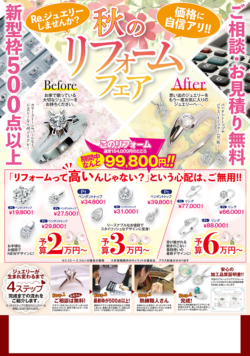 上記の日程でジュエリーリフォームフェアを開催いたします。